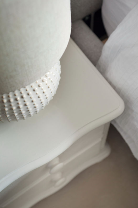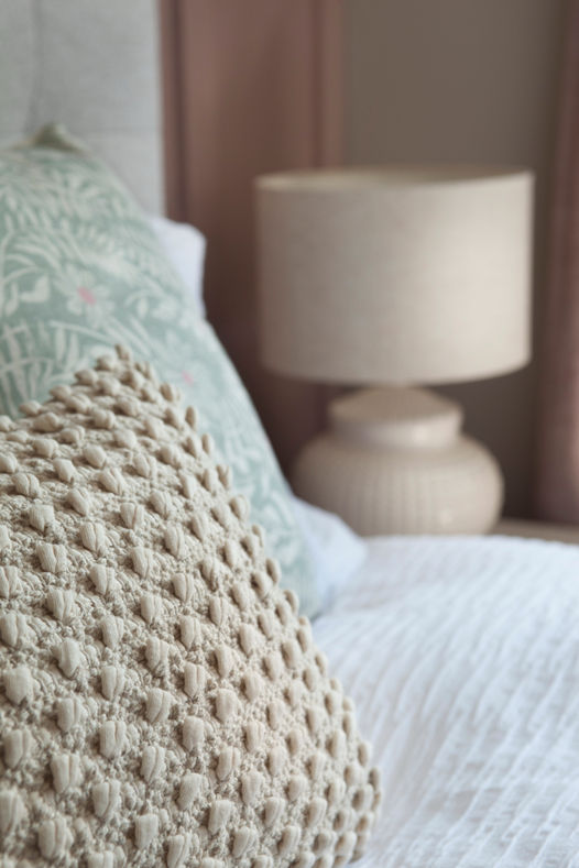The brief for this master bedroom was to take it from a bland magnolia room to space with warmth and character. The bedroom was a long thin rectangle with a window at the end. By adding the panelling it broke up the plain walls and added some much needed character to the room. Adding full length curtains framed the high window better and pulled it towards you, giving the illusion of the room being shortened. The warm neutrals and pinks give a more relaxed and calming feel to the room.